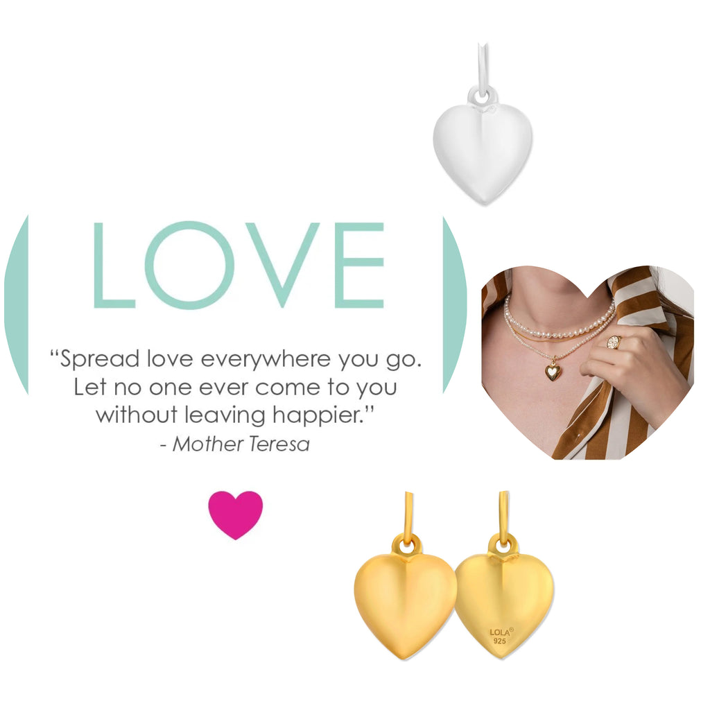 Lola Puffy Heart Pendant in Sterling Silver or Gold over Silver